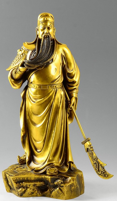 千百年来的关公崇拜,使生前只封过“汉寿亭侯”的关公,成王成帝,由人升华成了神。道家尊关公为“关帝圣君”,当然至高无上;佛家封关公为护法神,在伽蓝殿内享受人间烟火;儒家视关公为武圣人,与孔夫子并驾齐驱;在商家的眼里,关公是武财神,是他们顶礼膜拜最勤的神灵。